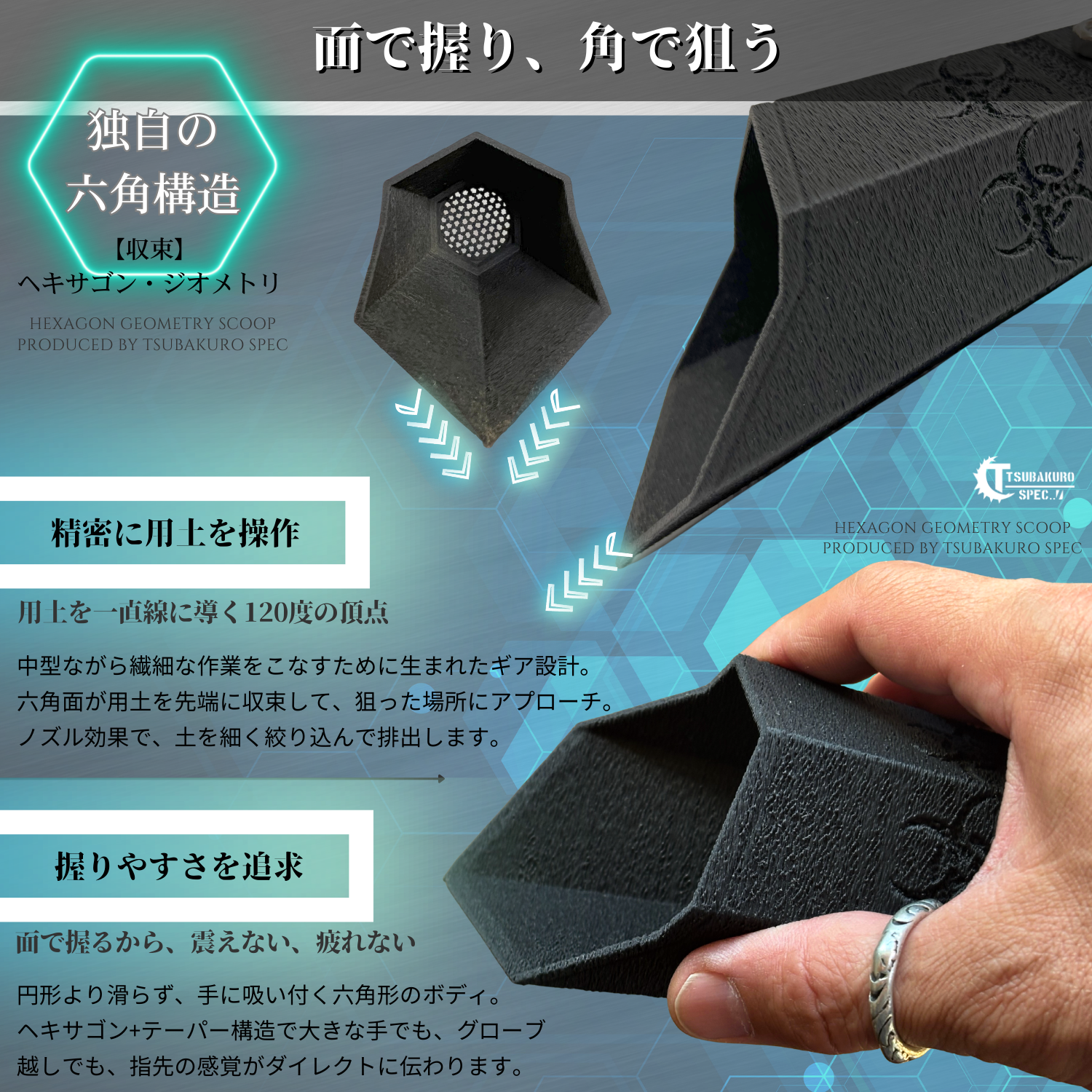 六角面が用土を先端に収束して、狙った場所にアプローチ。