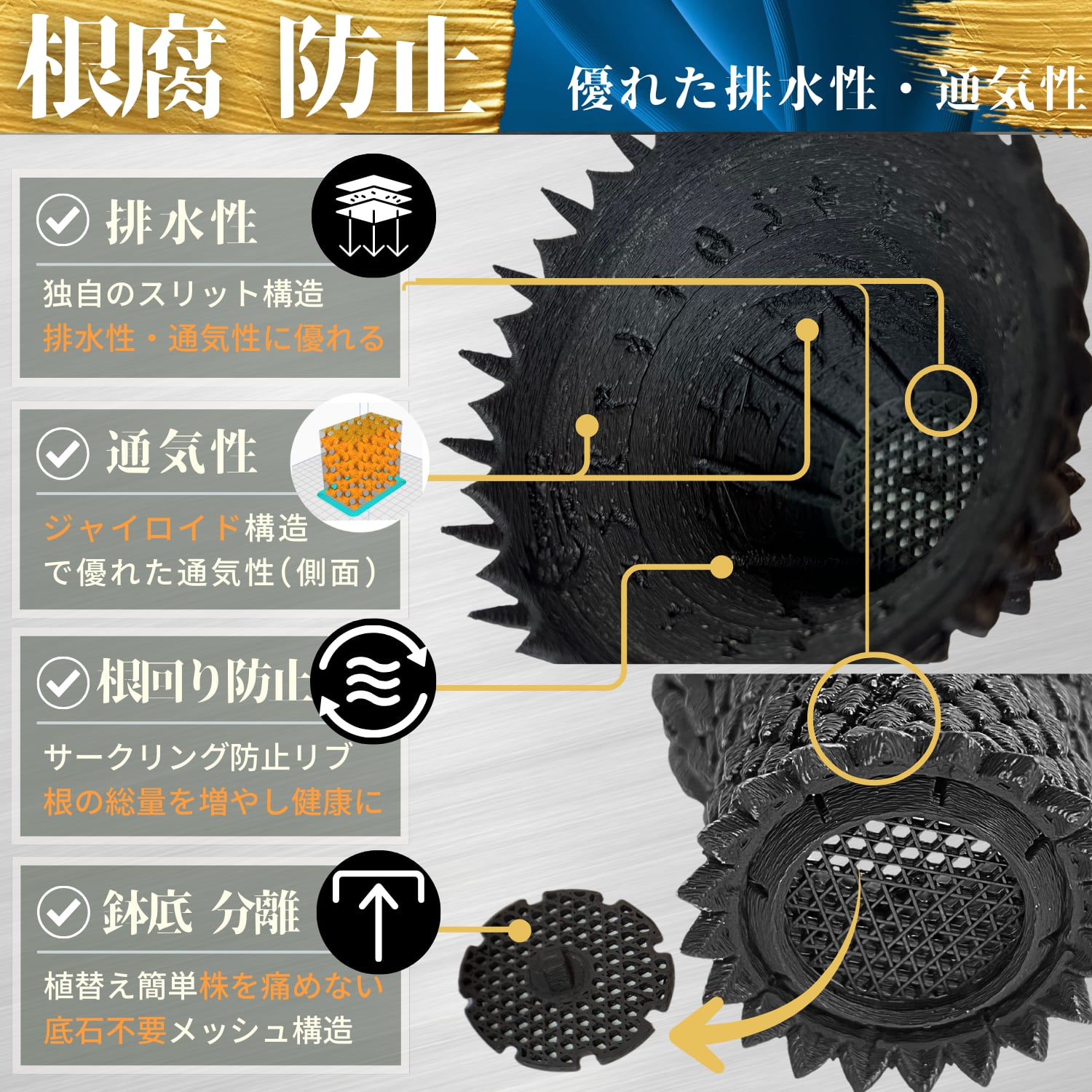 「機能に優れた作家鉢」がコンセプト 細部までこだわったデザインと細かい3D造形で、重厚感と所有感、機能性を兼ね備えたアガベや塊根、サボテンなど、乾燥好む植物専用設計の植木鉢です。