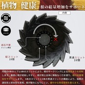 内側の8本のリブとスリットにより、根のサークリング現象・根詰まりを防止します。