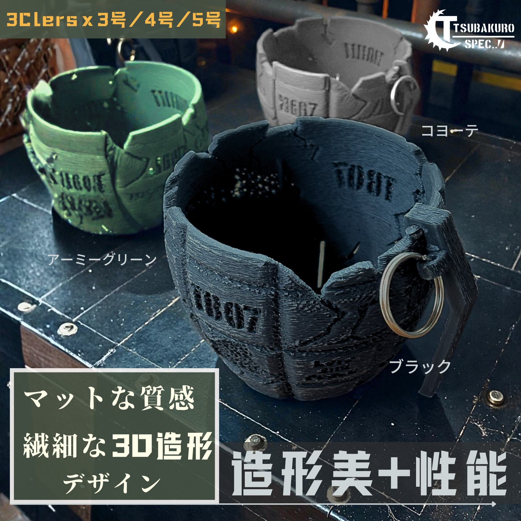 TSUBAKURO SPECの中で、ミリタリーテイストを取入れたラインの植木鉢です。