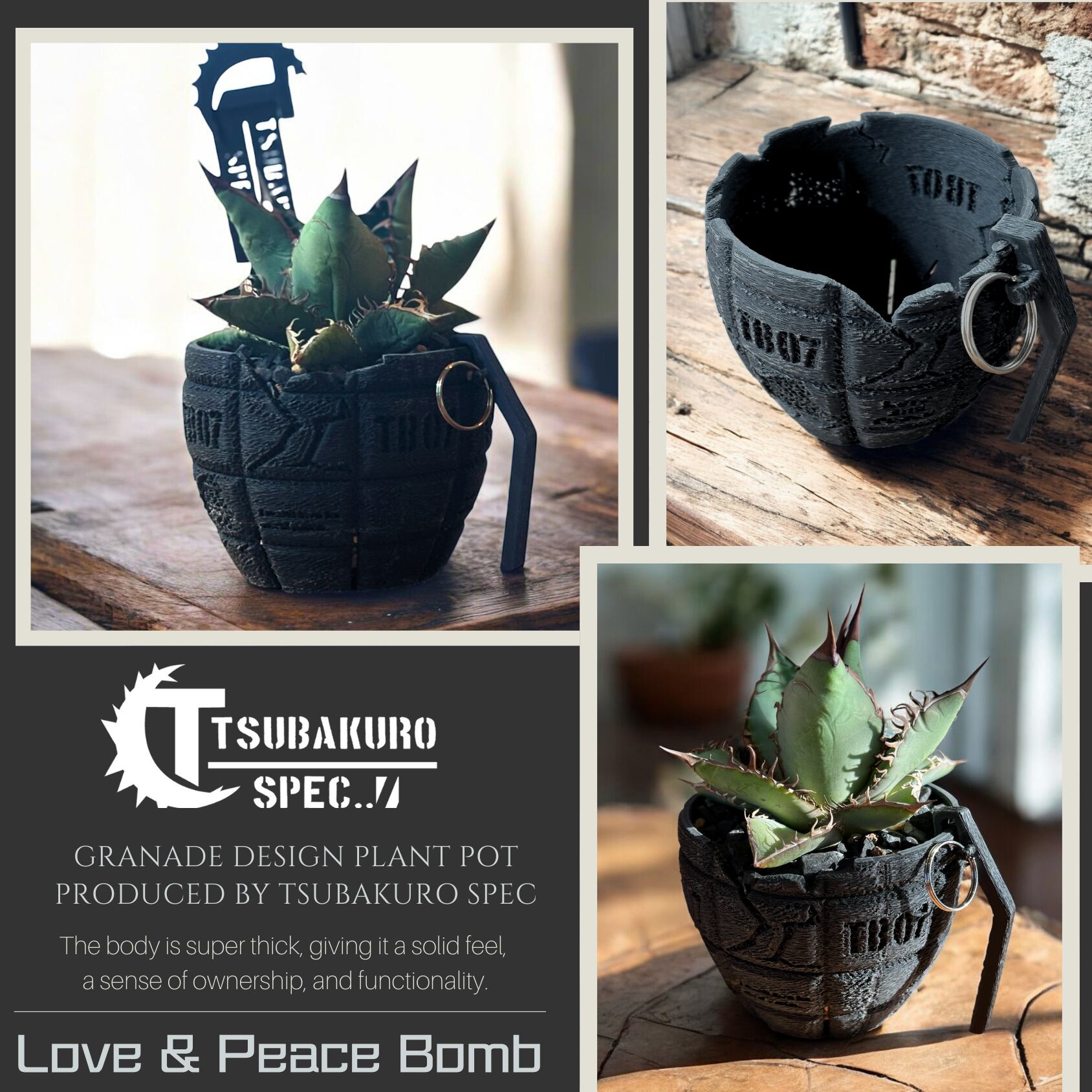 【作家鉢】Love & Peace Bomb / 3Dプリント鉢 4号 アガベ 塊根植物